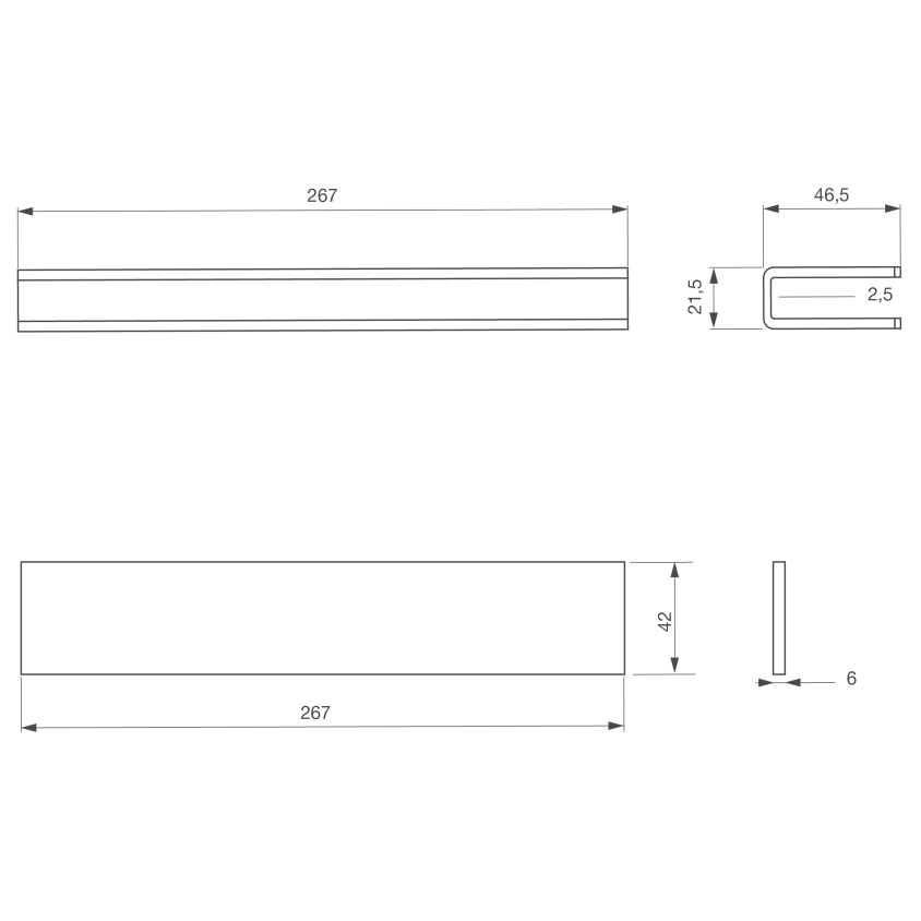 - Dimensions (L x l x p) : 267 x 46,5 x 21,5 mm (x2)