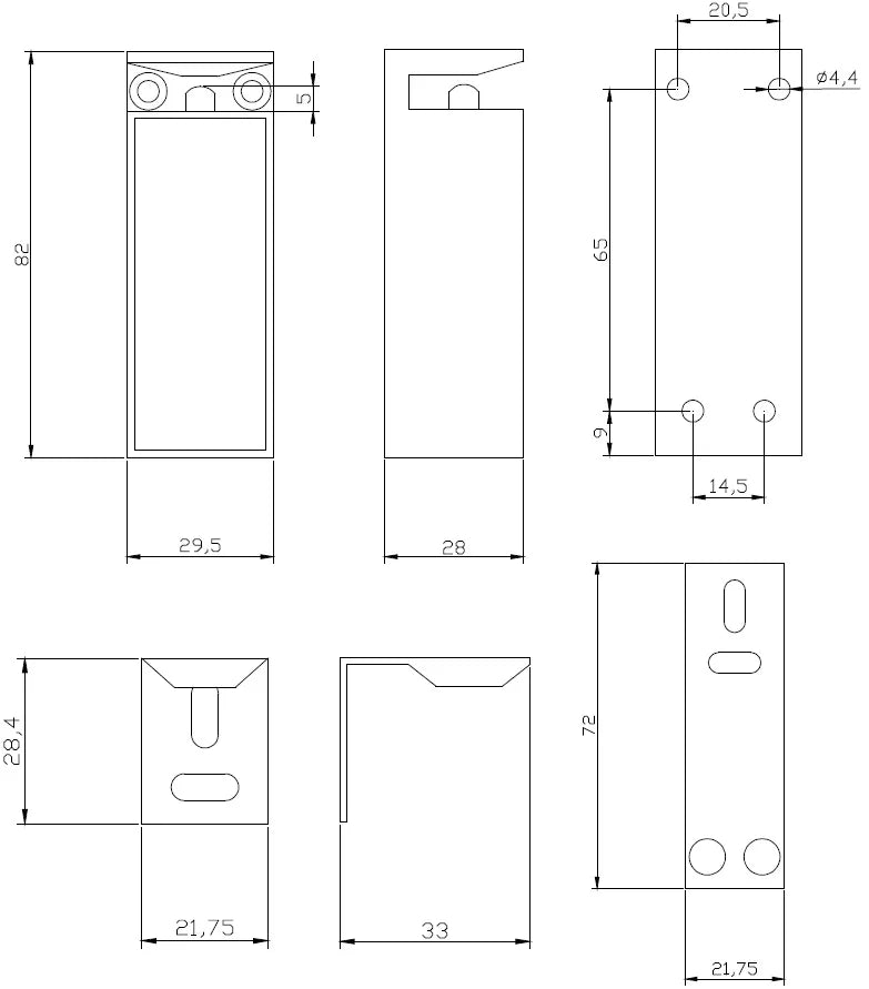 | Dimensions compactes | Verrou : 29,5 x 82 x 28 mm Contrepartie : 21,75 x 28,4 x 33 mm |
